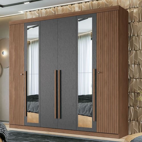 O(a) Guarda-Roupa Casal Loanda 6 Portas 4 Gavetas Ripado Jatoba/Grafite com Espelho - Pnr Móveis é produzido em MDP e HDF na escala de brilho Semi-Fosco, e possui um grau de dificuldade de montagem: Médio.