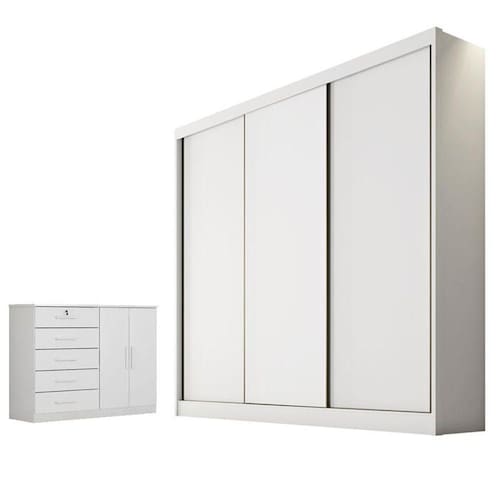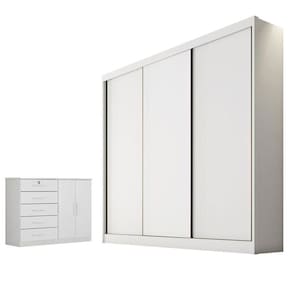 Guarda Roupa Casal Logan e Cômoda Seul Neve - Horizonte