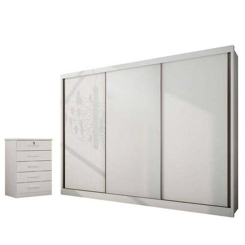 Guarda Roupa Casal Londres e Gaveteiro Suiça Neve - Novo Horizonte