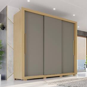 Possui 3 portas de correr com trilhos em alumínio e trava de segurança, proporcionando abertura suave e maior estabilidade. As gavetas com corrediças telescópicas permitem abertura total, facilitando o acesso aos seus pertences.