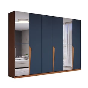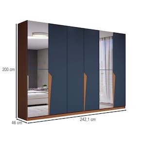 O(a) Guarda-Roupa Casal Luxe 2,42 Metros 6 Portas 4 Gavetas com Espelho Freijó/Azul - Loja é produzido em MDF e MDP na escala de brilho Semi-Fosco, e possui um grau de dificuldade de montagem: Médio.