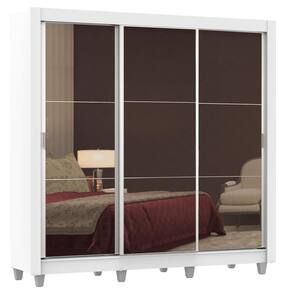 O Guarda-Roupa de Casal com melhor custo benefício do mercado. Ferragens de qualidade, três portas de espelho, cabideiro metálico, quatro gavetas e pintura em Poliéster Protetor que confere durabilidade e resistência. As portas de correr possuem trilho superior e inferior em alumínio e sistema de deslizamento suave garantindo melhor funcionamento. Total aproveitamento interno levando em conta o uso de duas pessoas. Nesta versão com quatro gavetas internas com corrediça metálica, diversos nichos que facilitam a organização de roupas, calçados e acessórios. O tubo cabideiro é muito resistente e possui espaço para roupas longas.