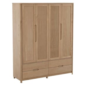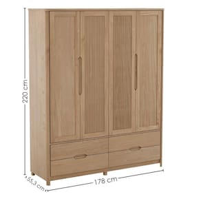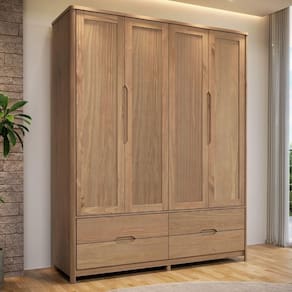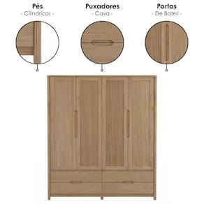 Guarda Roupa Casal Nest, móvel que traz a nobreza da natureza para dentro de casa! Desenvolvido por Designer, sua estrutura é composta 100% em Madeira Maciça Taeda (presença calorosa, toque orgânico) com espessura de 16/18 mm e acabamento em pintura brilho 5%. Composto por portas equipadas com dobradiças metálicas com amortecimento (sendo as 2 centrais com detalhes canelado), bordas curvas, puxadores usinados com recorte estilo cava, prateleiras internas espaçosas, amplas gavetas com corrediças telescópicas e cabideiro em alumínio. Além de pés cilíndricos também em Madeira Maciça de 35 mm, todos canelados, detalhes que elevam a elegância do produto. Produto será entregue em 04 volumes.