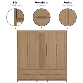 Guarda Roupa Casal Nest, amplitude que envolve e design que acolhe. Desenvolvido por Designer, sua estrutura é composta 100% em Madeira Maciça Taeda (presença calorosa, toque orgânico) com espessura de 16/18 mm e acabamento em pintura brilho 5%. Composto por portas equipadas com dobradiças metálicas com amortecimento (sendo a central com detalhe canelado), bordas curvas, puxadores usinados estilo cava, prateleiras internas espaçosas, amplas gavetas com corrediças telescópicas e cabideiros em alumínio. Além de pés cilíndricos também em Madeira Maciça de 35 mm, todos canelados, detalhes que elevam a sofisticação do produto. Produto será entregue em 04 volumes.