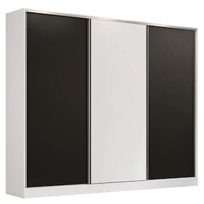 Guarda Roupa Casal Madesa 3 Portas de Correr Branco e Preto
