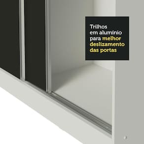 Conta com ótima interna, incluindo quatro gavetas espaçosas e com corrediças metálicas. Ideal para utilização no quarto de casal, o móvel possui abertura com três portas de correr com deslizamento suave, que facilitam a circulação no ambiente.