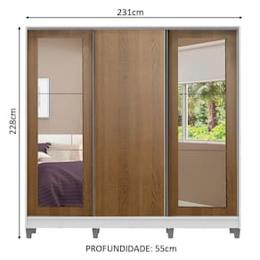 Medidas totais do armário: 228 cm de altura x 231 cm de largura x 55 cm de profundidade.