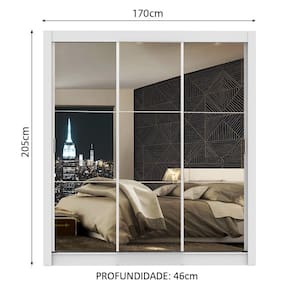 Medidas totais do armário: 205 cm de altura x 170 cm de largura x 46 cm de profundidade.