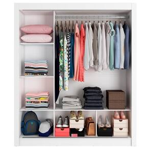 Itens inclusos: - Três (3) prateleiras totalizando seis (6) nichos - Um (1) cabideiro grande - Três (3) portas de correr de madeira com 2 puxadores em PVC