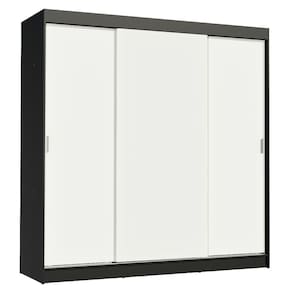 Itens inclusos: - Oito (8) nichos internos - Quatro (4) gavetas internas - Três (3) cabideiros - Três (3) portas de correr de madeira e dois (2) puxadores em PVC