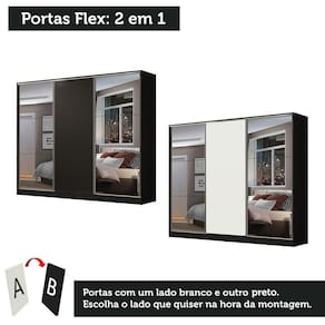 O acabamento externo é preto e o interno é branco. Todas as portas possuem pintura preta em um lado e branca no outro. Assim, cabe a você a escolha no momento da montagem. O processo é feito em Pintura Poliéster de alta resistência que confere maior proteção e durabilidade ao móvel.