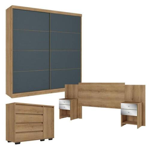 Guarda Roupa Casal Malaga 2 Portas Capuccino Azul com Cômoda com Porta Aurora e Cabeceira Formosa Glass Capuccino- THB