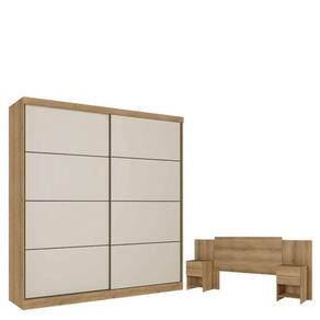 Guarda Roupa Casal Malaga 2 Portas Capuccino Off White e Cabeceira com Mesas de Cabeceira Formosa Capuccino - THB
