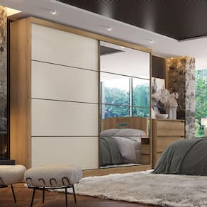 O Guarda Roupa Casal Malaga Full Glass foi desenvolvido para quem busca sofisticação, funcionalidade e design exclusivo. Sua combinação moderna do tom Capuccino com o Off White Acetinado cria um visual elegante e contemporâneo, perfeito para valorizar a decoração do quarto. Resistente, funcional e imponente, o Guarda Roupa Casal Malaga Full Glass une beleza e durabilidade, sendo a escolha ideal para quem deseja um quarto mais moderno, aconchegante e bem planejado.