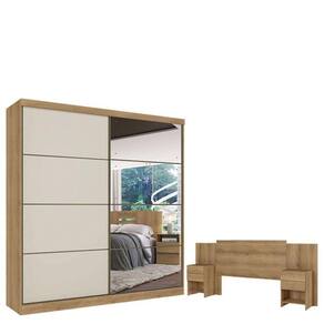 Guarda Roupa Casal Malaga Full Glass 2 Portas Capuccino Off White e Cabeceira Formosa Capuccino - THB