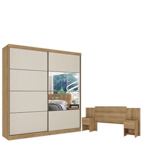 Guarda Roupa Casal Malaga Glass 2 Portas Capuccino Off White e Cabeceira com Mesas de Cabeceira Formosa Capuccino - THB
