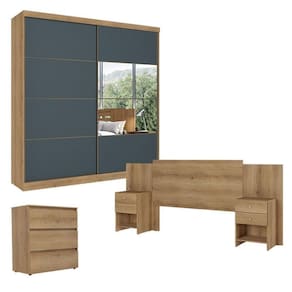 Guarda Roupa Casal Malaga Glass 2 Portas Capuccino Azul com Cômoda Gaveteiro Condessa e Cabeceira Formosa Capuccino- THB