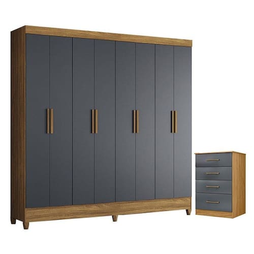 Guarda Roupa Casal Marajó e Cômoda MS913 Freijó Cinza Moval