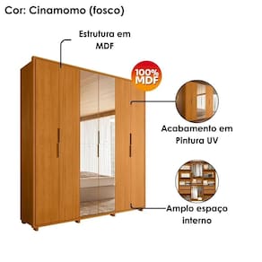 O Guarda Roupa Casal Matisse une funcionalidade e modernidade para deixar seu ambiente mais elegante! Estrutura 100% MDF 15/25 mm e acabamento em pintura UV. Possui portas com dobradiças metálicas e amortecimento, puxadores em metal (portas centrais com espelhos). Conta também com gavetas de corrediças telescópicas, amplos nichos para armazenamento e cabideiros internos, sendo o superior extensível com pistão a gás. NÃO ACOMPANHA OBJETOS NEM DEMAIS DECORAÇÕES. Este produto será entregue em 6 volumes.