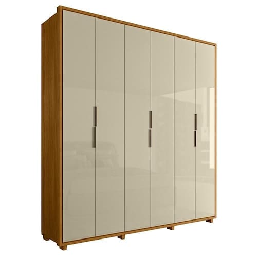 Guarda Roupa Casal Matisse 6 Portas Cumaru/opala - Madetec Cumaru/opala Guarda Roupa Casal Matisse 6 Portas - Madetec O Guarda-Roupa Casal Matisse 6 Portas une sofisticação e funcionalidade em um só móvel. Produzido em MDF com pintura UV, conta com 6 portas com dobradiças metálicas de 35mm e sistema de amortecimento, além de puxadores em metal que garantem resistência e elegância. Internamente, oferece 4 gavetas com corrediças telescópicas, 2 cabideiros sendo um extensível e outro em alumínio, prateleiras e nichos bem distribuídos para uma organização completa. Seu design é valorizado pela moldura envoltória de 25mm e pelos pés em poliestireno de 50mm, que complementam o visual moderno e robusto. ESPECIFICAÇÕES: - Estrutura em MDF - Pintura UV - 6 Portas - Dobradiças metálicas de 35mm com sistema de amortecimento - Puxadores em metal nas portas - 4 Gavetas internas - Corrediças telescópicas - Cabideiro extensíveis - Cabideiro de alumínio - Interna com nichos e prateleiras - Moldura envoltória de 25mm - Pés em poliestireno de 50mm