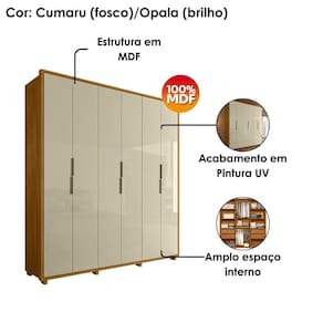 O Guarda Roupa Casal Matisse une funcionalidade e modernidade para deixar seu ambiente mais elegante! Estrutura 100% MDF 15/25 mm e acabamento em pintura UV. Possui portas com dobradiças metálicas e amortecimento, puxadores em metal. Conta também com gavetas de corrediças telescópicas, amplos nichos para armazenamento e cabideiros internos, sendo o superior extensível com pistão a gás. NÃO ACOMPANHA OBJETOS NEM DEMAIS DECORAÇÕES. Este produto será entregue em 5 volumes.