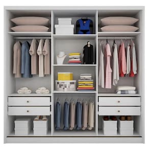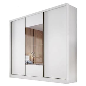 Guarda Roupa Casal Medelim 3 Portas 4 Gavetas Neve com Espelho ? Horizonte