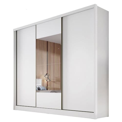 Guarda Roupa Casal Medelim 3 Portas 4 Gavetas Neve com Espelho – Novo Horizonte