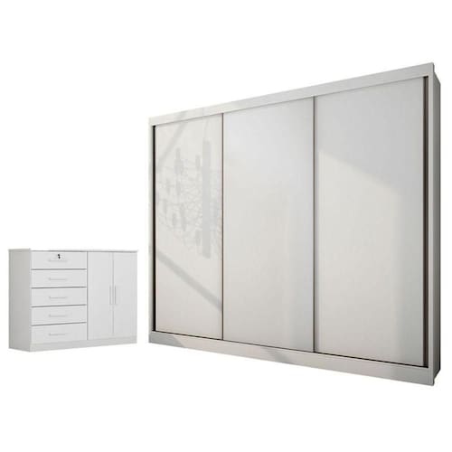 Guarda Roupa Casal Medelim e Cômoda Seul Neve - Horizonte
