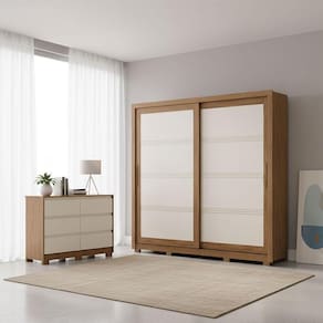 Guarda Roupa Casal Medelín e Cômoda Ravenna Ambiente Nature Off White - Henn