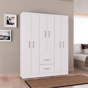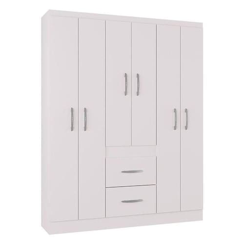 Guarda Roupa Casal Milão 6 Portas Branco Brilho Poquema