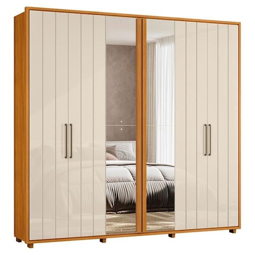 Guarda Roupa Casal Miro 6 Portas Com Espelho 250 Cm Cinamomo Off White Madetec Cinamomo Off White