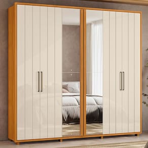 O Guarda Roupa Casal Miró une funcionalidade e um estilo moderno, ideal para complementar seu ambiente! Estrutura 100% MDF 15/25 mm e acabamento em pintura UV. Possui portas com dobradiças metálicas e amortecimento, detalhes em frisos de baixo relevo (sendo as 2 portas centrais com espelho) e puxadores em metal. Conta também com gavetas de corrediças telescópicas, amplos nichos e cabideiros internos (sendo os dois superiores extensíveis com pistão a gás). NÃO ACOMPANHA OBJETOS NEM DEMAIS DECORAÇÕES. Este produto será entregue em 9 volumes.
