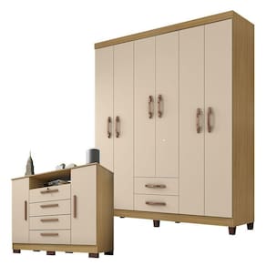 Guarda Roupa Casal Módena com Cômoda Madri Carvalho Americano Off White Incorplac