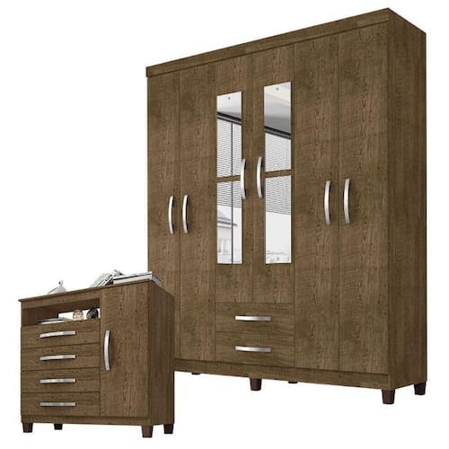 Guarda Roupa Casal Módena com Espelho 6 portas Malbec Incorplac