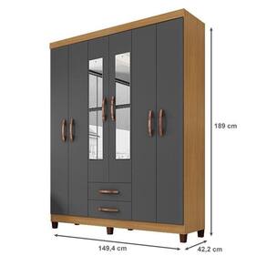 Guarda Roupa Casal Módena com Espelho 6 Portas Carvalho Americano Grafite Incorplac