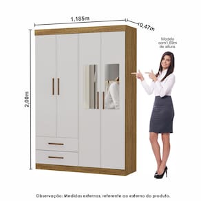 Guarda Roupa Hercules 4 Portas com espelho: Dimensões: Altura: 200 cm Largura: 119 cm Profundidade: 47 cm