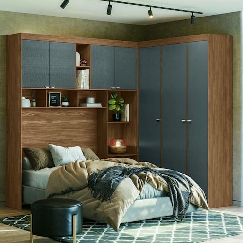 O Quarto Casal Lugano é um jogo de quarto de casal completo, um modulado que atende a espaços menores, com o maior aproveitamento de parede e o melhor custo/benefício. Possui um roupeiro de 3 portas de abrir com puxadores pontuais. No módulo acima da cama podem ser acomodados os travesseiros, cobertores, roupas de cama...em suas 4 amplas portas, além de nichos para expor decoração. O espaço para colchão é de 1,38 m. Todos os detalhes foram pensados para a funcionalidade e praticidade do dia a dia num quarto onde precisa guardar tudo!