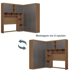 Guarda-Roupa Casal Modulado Lugano Jatobá/Grafite 7 Portas 4 Gavetas Cabideiro - Santos Andirá