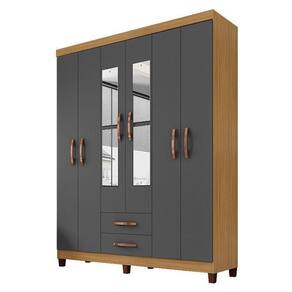 Guarda Roupa Casal Mogi com Espelho 6 Portas Carvalho Americano Grafite - Incorplac