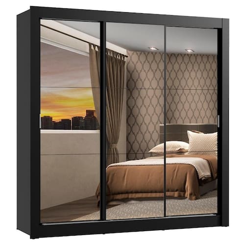 - Três (3) portas de correr com espelhos e dois (2) puxadores em PVC