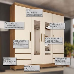 Guarda Roupa Casal Mônaco 4 Portas com Espelho Amendola Off White - Demobile