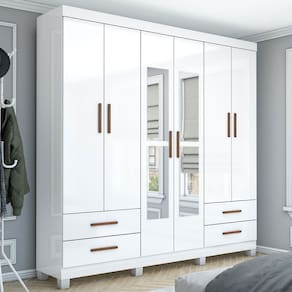 O(a) Guarda-Roupa Casal Mondo 6 Portas 4 Gavetas com Pés e Espelho Branco - Pnr Móveis é produzido em MDP na escala de brilho Fosco e Semi-Brilho, e possui um grau de dificuldade de montagem: Médio.