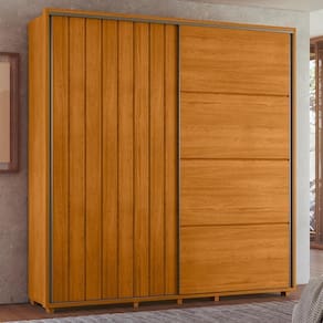 Guarda Roupa Casal Monet Ripado 2 Portas Deslizantes Cinamomo - Madetec Cinamomo Guarda Roupa Casal Monet Ripado 2 Portas Deslizantes - Madetec Design moderno, funcionalidade e elegância em um só móvel. O Guarda-Roupa Monet conta com 2 portas deslizantes com amortecimento, trilhos de alumínio e perfis metálicos que evitam empenamentos. Destaque para o ripado angular em uma das portas, que traz charme e sofisticação ao ambiente. Internamente, oferece 4 gavetas com corrediças telescópicas, cabideiros extensíveis de alumínio, prateleiras e nichos para uma organização eficiente. Estrutura em MDF com pintura UV, moldura envoltória de 25mm e pés em poliestireno de 50mm garantem resistência e durabilidade. ESPECIFICAÇÕES: - Estrutura em MDF - Pintura UV - 2 Portas deslizantes com amortecimento - Trilhos em alumínio - Perfis metálicos antiempenamento - Ripado angular em uma porta - Puxadores de alumínio nas portas - 4 Gavetas internas - Corrediças telescópicas - Cabideiros extensíveis - Cabideiros de alumínio - Interna com nichos e prateleiras - Moldura envoltória de 25mm - Pés em poliestireno de 50mm