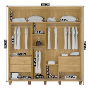 1x Kit com 6 Ripas para Roupeiro Porta de Correr Cinamomo Largura: 4,6 cm Altura: 213,6 cm Peso: 5,8 kg Profundidade: 0,9 cm Necessita Montagem: Sim