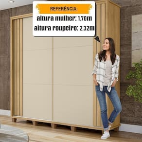 O Guarda Roupa Monte Carlo RV Móveis é ideal para quem busca organização prática, design sofisticado e funcionalidade no quarto. Com visual clean e estrutura ampla, atende perfeitamente casais ou quem mora sozinho, acomodando roupas, acessórios e calçados com facilidade. Seu grande diferencial está nas 2 portas de correr com detalhe ripado, traz sofisticação e elegância, com trilho de alumínio, que garantem abertura suave, economia de espaço e alta durabilidade. As portas ripadas em MDF, adicionando textura e um toque contemporâneo ao ambiente. O acabamento interno na cor do produto reforça o padrão premium do móvel. A organização interna é completa, com cabideiro e calceiro em alumínio, 3 maleiros, Altura do Conjunto: 231.4 cm Ambiente Principal: Quarto codigo_ean: 7900288343819 Cor: Cinamomo/ Off-White Cor do Produto: Cinamomo/ Off-White Informação Complementar: 1x Guarda-Roupa Casal Monte Carlo com 2 Portas de Correr 4 Gavetas Internas e Maleiros Cinamomo/Off White Largura: 228 cm Altura: 232 cm Peso: 170,5 kg Profundidade: 58 cm Necessita Montagem: Sim