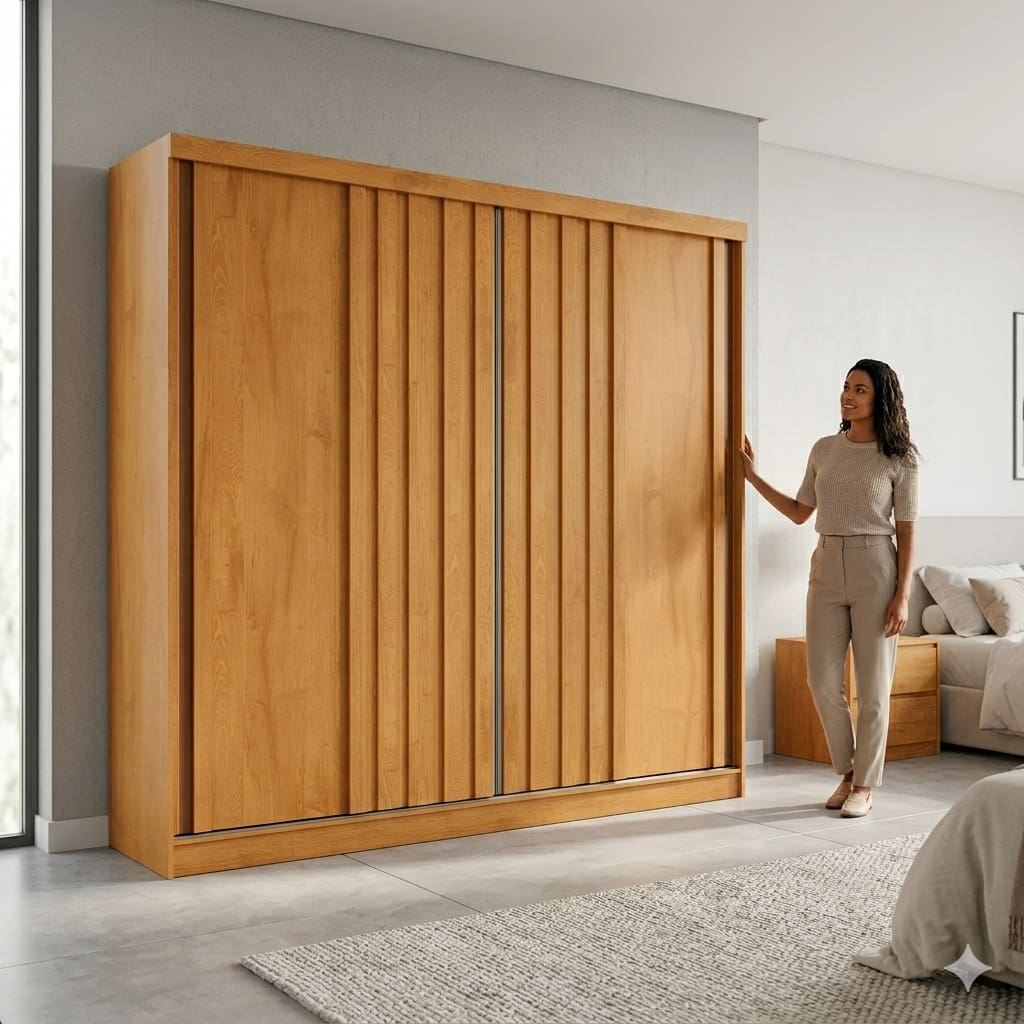 guarda roupa casal moveis europa londres flex com espelho 2 portas de correr e 4 gavetas 205cm de largura