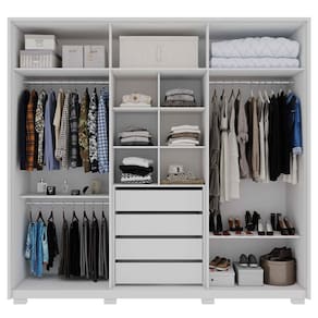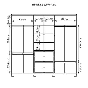 Roupeiro Mozart - Possui 6 Portas - Possui 4 Gavetas - Possui 3 Cabideiros Em Alumínio - Possui 8 Sapatas - Possui 6 Nichos - Possui 13 Repartições Internas