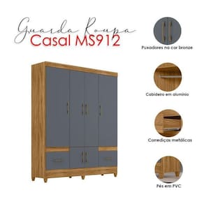 Começou a montar seu quarto? Então apresentamos para você este belo guarda roupa da linha MS912. Possuindo seis portas, revela um amplo espaço interno para acomodar suas roupas e acessórios. Além disso, conta com duas gavetas equipadas com corrediças metálicas, proporcionando um deslizamento mais suave. Os puxadores na cor bronze dão um toque de requinte, enquanto os pés em PVC garantem mais estabilidade e durabilidade. Fabricado pela Moval, é desenvolvido em 100% MDP de alta qualidade. Com um design moderno e acabamentos refinados é perfeito para quem está procurando otimizar o espaço sem abrir a mão da organização, aproveite!
