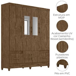 Projetado para atender às necessidades do dia a dia, o Guarda-Roupa Casal MS912 oferece espaço e modernidade. Estrutura em MDP (15/ 12 mm) e acabamento em pintura UV. Composto por portas com dobradiças metálicas (sendo 2 com espelho), cabideiro interno (alumínio), prateleiras e gavetas com corrediças metálicas. Produto com dupla opção de montagem: pés em PVC ou sapatas plásticas (2 mm) conforme preferência do cliente. Este produto será entregue em 03 volumes.