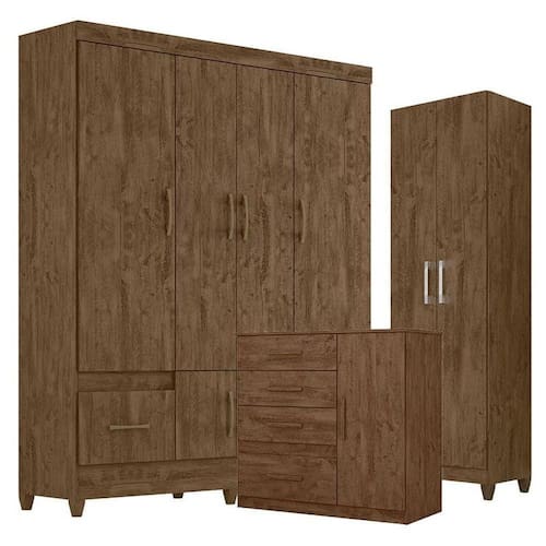 Guarda Roupa Casal MS912 com Cômoda Vênus e Armário Multiuso New Íris Castanho Wood Moval